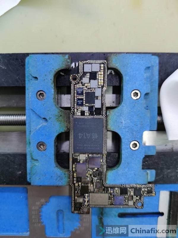 iPhone 12 has no signal, the mobile phone is stuck when inputting the password, and the middle layer of the main board is not as good as welding, and the fault is repaired after welding is renewed.