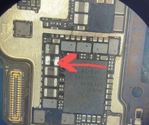iPhone 12 Pro Max Won't Turn On, after disassembling and testing, find Short circuit Capacitor with The rosin smoke method method, and replace it with perfect repair.