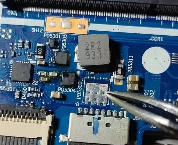 The main board short circuit causes the soft breakdown of PQ5303, which leads to the protection of the charging chip BQ24780, resulting in the non-conduction of the protection isolation circuit.