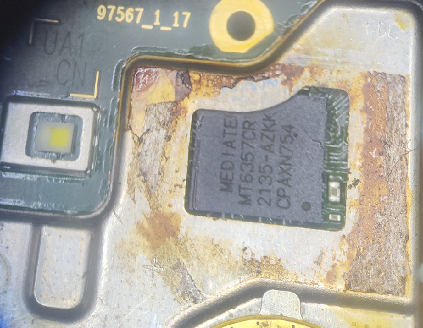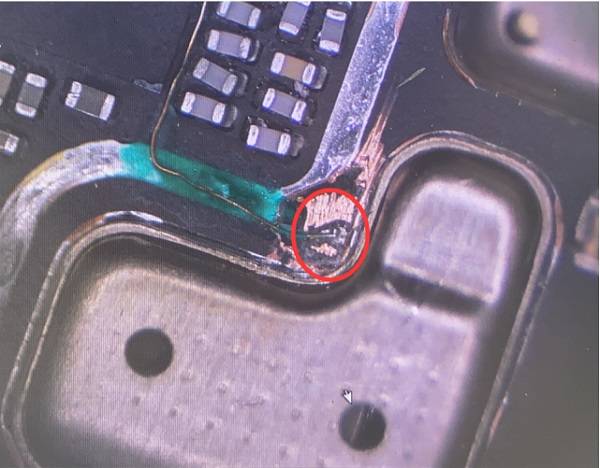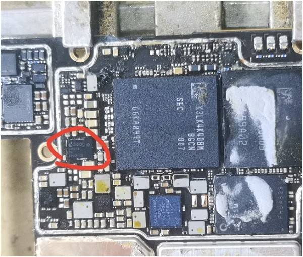 Observing the motherboard after disassembling, the corrosion is not serious. When the battery is not installed, plug in the charger for the mobile phone, and measure that the positive voltage of the battery is only 1V, which is obviously low. After replacing the charging IC, the charging current returns to normal.