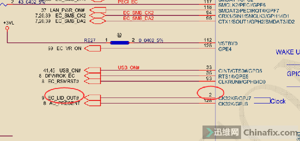 There is an VCC of 2v or so when it is not powered on. At that time, I didn’t know whether it was normal or not, but it was detected. After it is normal, EC_LID_OUT# stands by for low VCC. After judging, it may be that EC_LID_OUT# is abnormal, which leads to the abnormal work of EC. It is detected that EC_LID_OUT# is directly connected through a resistor RC96 of 0 ohms.