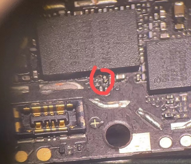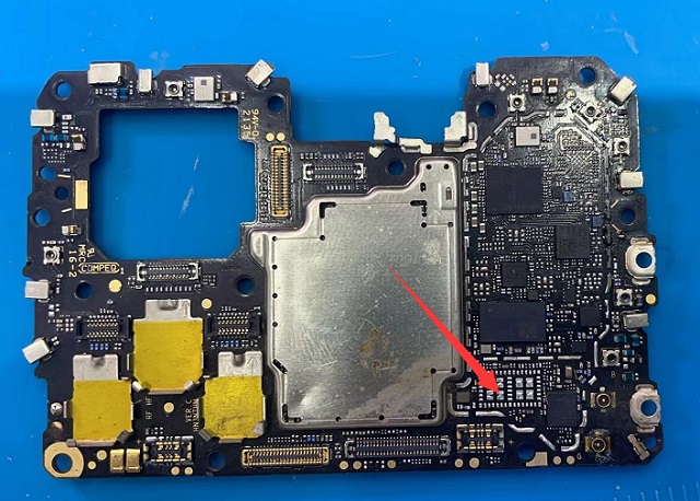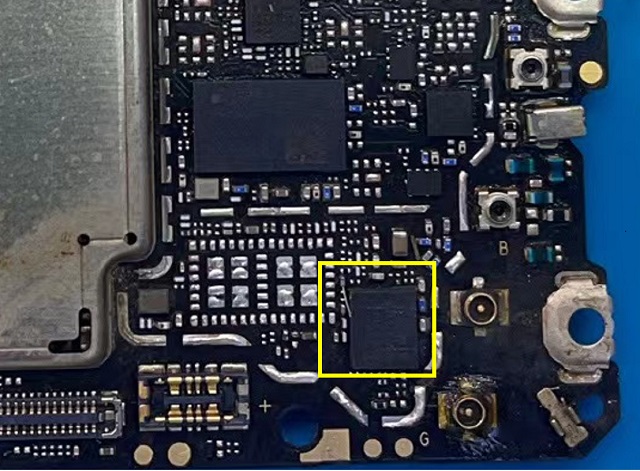 Focus on the inspection of the periphery of the 4G power amplifier chip. After careful observation, it is found that there are corrosion marks around a chip on the right side of the 4G chip, and there is a small amount of electrolyte. Redo this chip.