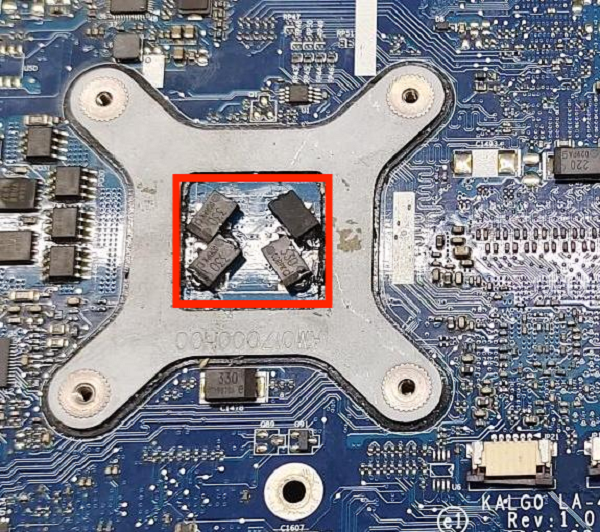 Maintenance process: the customer’s description is that the VGA is plugged in and the external connection is powered off. So, after dismantling the machine, I found that the NEC on the back of the CPU had been changed by my family, which is a common fault of NEC capacitors.