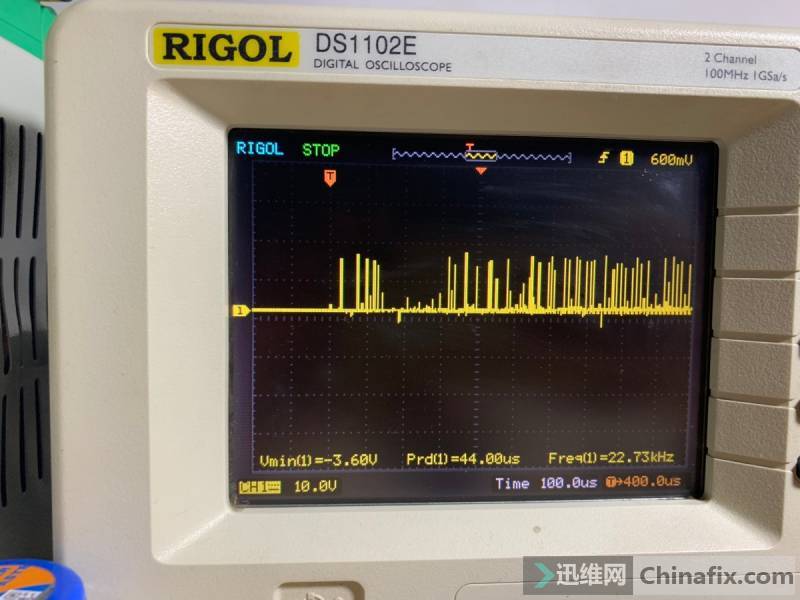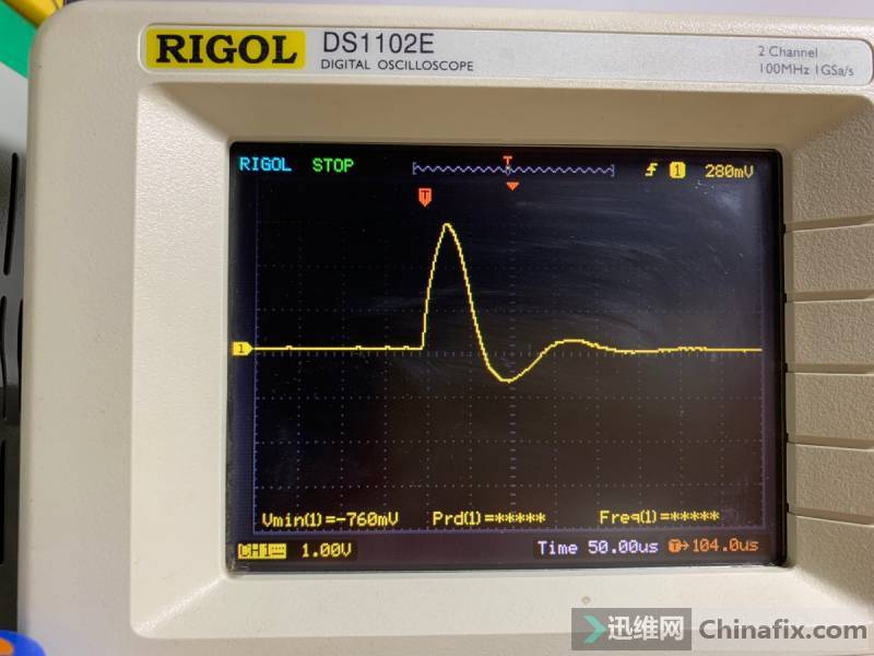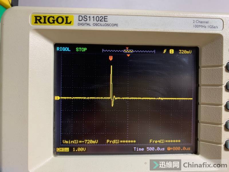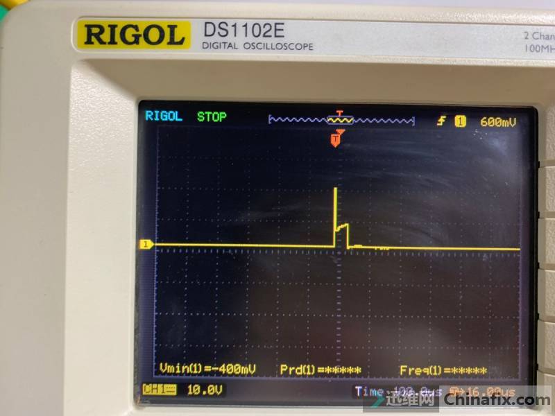 See this waveform, the obvious overpressure Current protection, here adjusted to 1V, this waveform has reached 3 grids, indicating that the chip output as high as 3V, the motherboard overvoltage Current protection.Let’s look at the g-pole waveform of the upper tube.