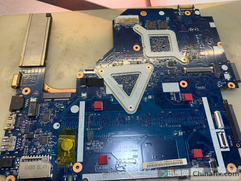 After receiving an ACER notebook, the customer said that there was something wrong with the machine. Maybe it was a loose thread, no water damage or falling.Connect DC power supply power on test, standby 0.23a, current is high, press Switch, no response.Take a look at the machine, the main board obviously into the water.