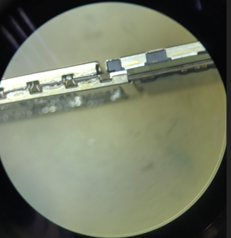 Maintenance process: all the test signals can appear normally, that is, after a while, the dropped line becomes no serviecs, and then it is recognized that the operator signal is normal again, and this is repeated. Observing the deformation of motherboard under microscope,shielding cover in Baseband CPU position is cracked.