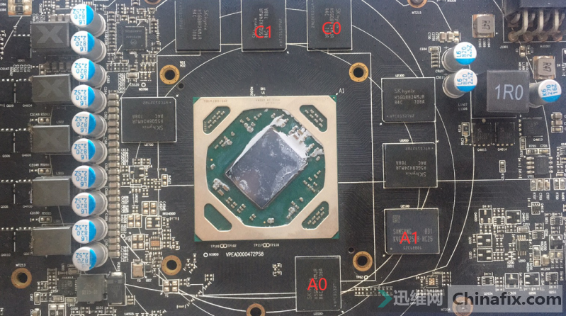 The exclamation point is not booting up. Combined with GPUZ information, it is judged to be a memory problem. Take a closer look at 8 video memory. There is an 80 Samsung video memory in the 8H Hynix video memory.