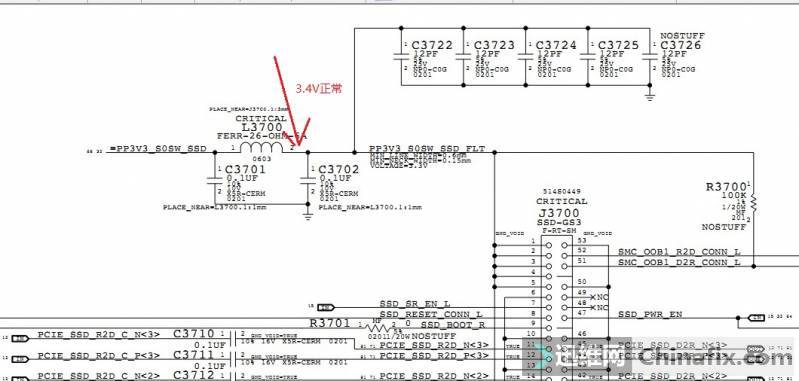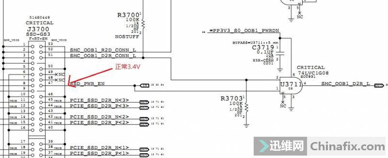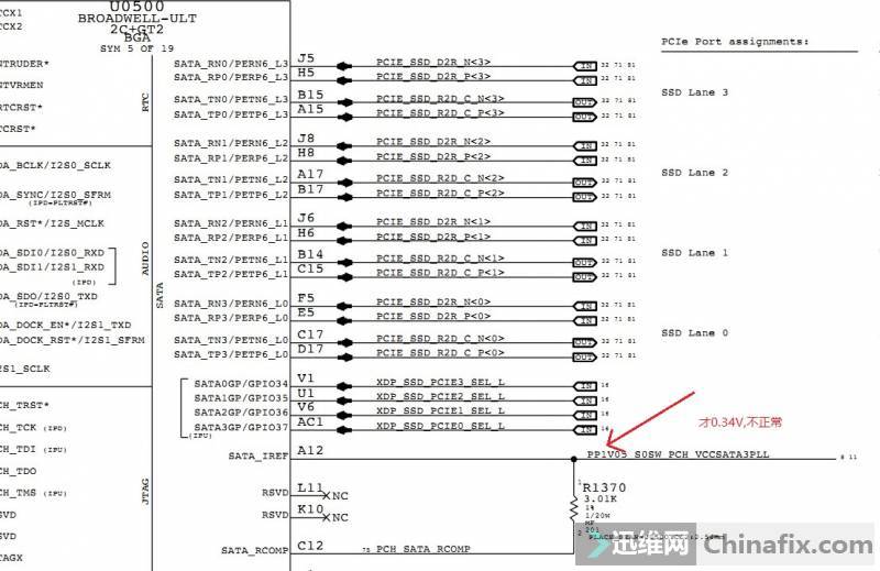 Open the SATA module schematic of the bridge, and check the VCC of the bridge, which is only 0.34V.