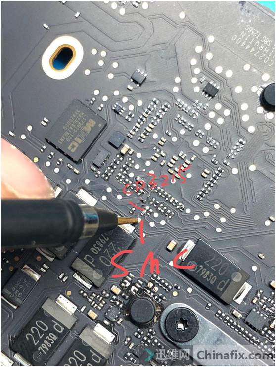 CB304 has no VCC output at this time. Check SMC according to the time sequence to get SMC_RESET_L signal, then U1900 CLK will shake, and SMC’s own reading program will start pin configuration. All these are normal. Only the communication between SMC and CD3215 is found to be I2C bus, and one of them is abnormal. I2C_UPC_X_SDA2 can transmit normally.