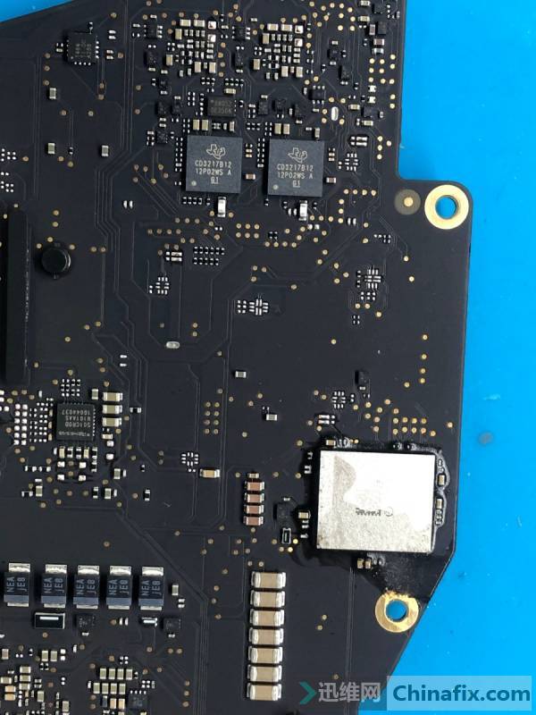 Use The rosin smoke method method, add 1V VCC Current heating test, and find the faulty components CL002 and CL053.