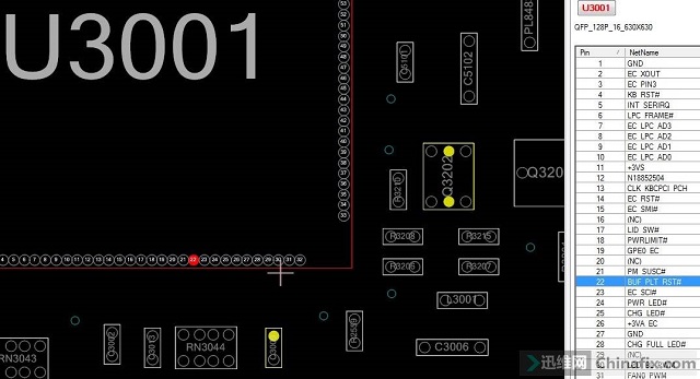 Find out the diagnosis card, and weld all the leads according to the point bitmap. Asustek’s DEBUG socket lacks the reset signal, so go to the EC to find a platform reset signal, such as PLT_RST, as shown in the following figure: