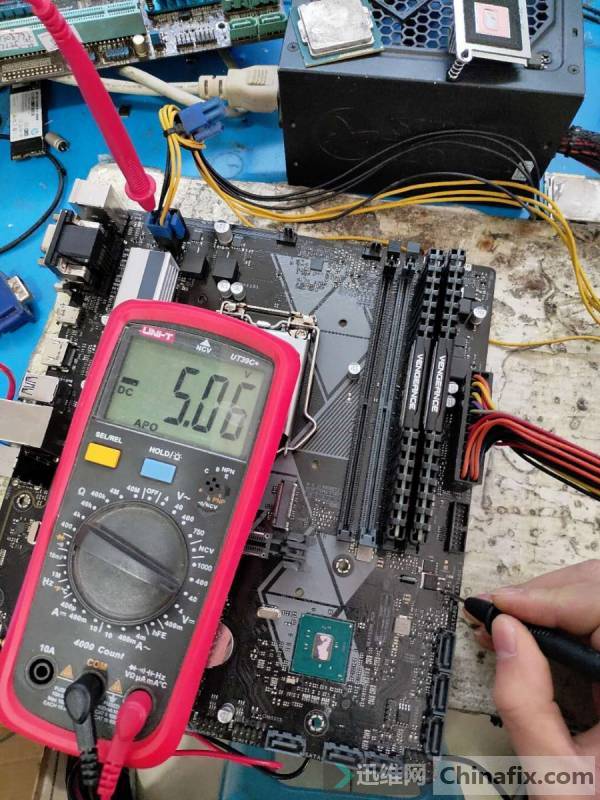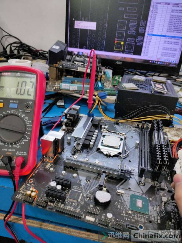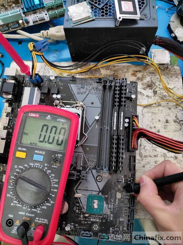 An ASUS prime b365m-a motherboard is used to test the main board no power on, and the South Bridge to ground Diode value is normal is measured. If the CMOS battery is removed, the discharge is still no power on.