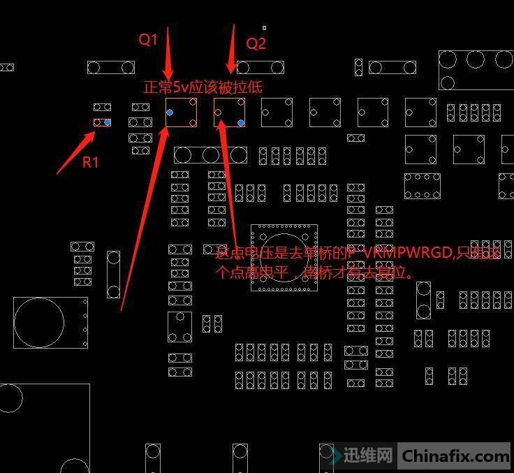 Normally, the VCC should be pulled low, and then the Q2 cut-off is controlled. At this time, 3V VCC of R1 pull-up resistor can reach the bridge and inform the bridge that all VCC are ready and can be reset.
