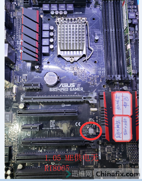 ASUS B85-PRO GAMER motherboard is not powered on, 1.05 V bridge is powered on, and the flying line passes directly, and the machine lights up normally.