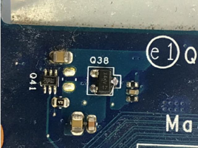 The d-level 5678 pin VCC of Q38 is 3.3V, the control level is 4.8V, and the output of s level is only 1.3V. Directly test the d-level and S-level short-circuit to see if they are normal. We can see that the drawings and the real objects are a little inconsistent.