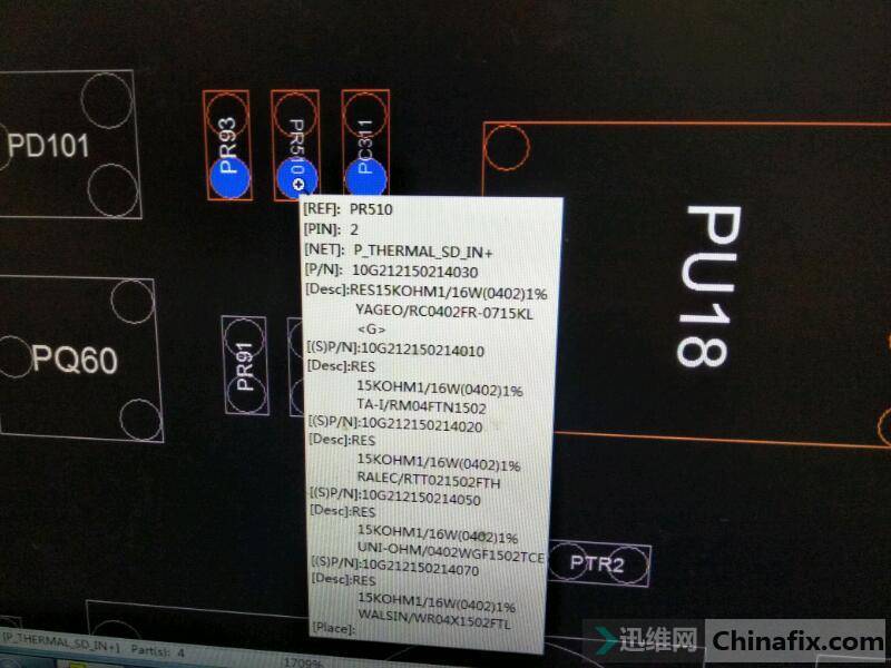 First measure this circuit, the measured pr93 is 2.2k, pr510 is 3.6k, and the drawing shows that pr510 is 15K. It is obvious that the resistance damage causes the reduction of VCC.