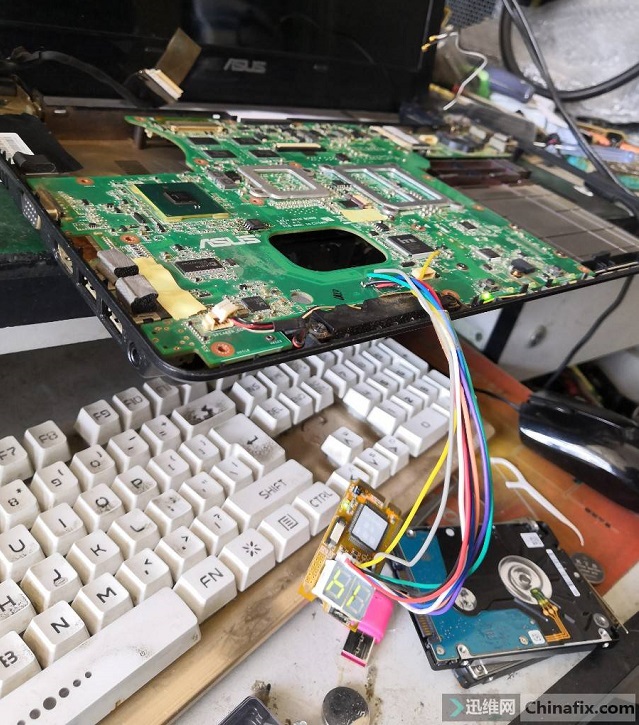 An ASUS U4000U laptop can’t be turned on. Plug in EC AVCC VCC+3VA_EC in constant high and low current of change, and EC _ rst # is also constant VCC 21201, and use analog oscilloscope to see the waveform.