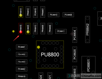 Test resistance PR8815 is no VCC, one end of PR8814 is 19V and one end of PR8814 is 0V. At first, one end of PR8814 is 19V and the other end of PR8814 is 3.3 normal.
