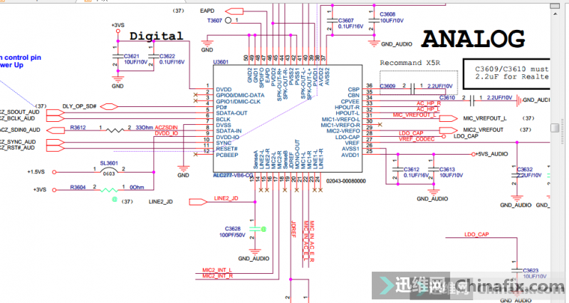 Test VCC, 1, 25, 38, 39, 46,VCC is normal, and the reset signal of CLK is synchronized. 5.6.10.11 is also normal. If the headphone interface is removed, the problem is still the same.