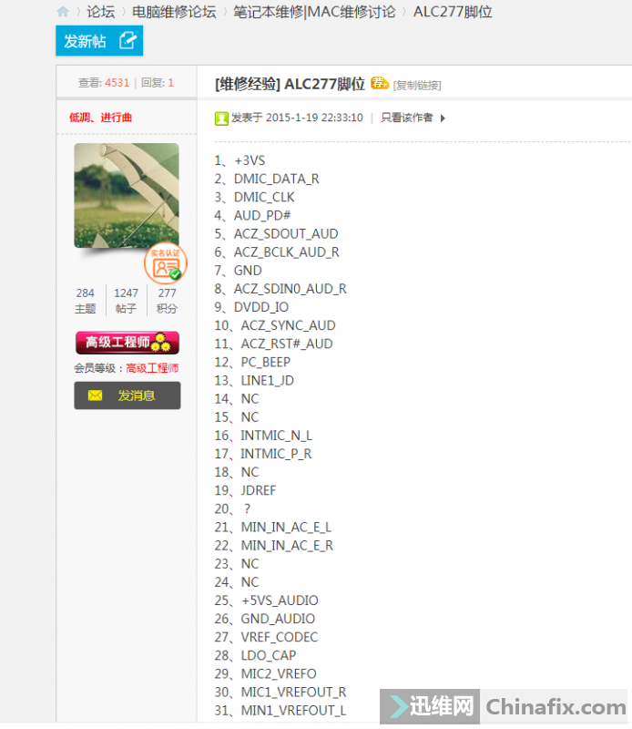The measurement datum is VCC,27 pin and Diode value is normal, but there is no VCC. The problem is found.
