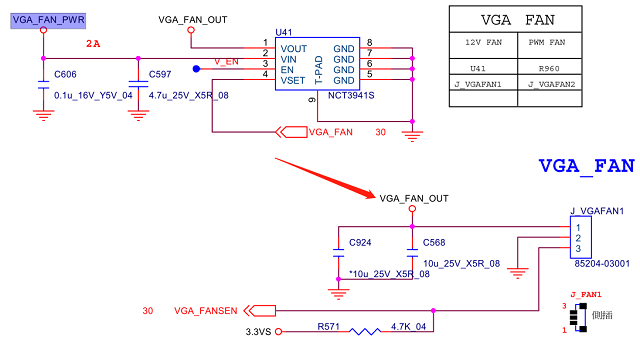VGA_FAN_OUT VCC is 0,Short circuit was not found in Measuring diode value after power failure, so trace it forward.