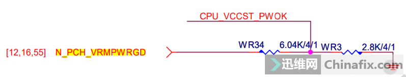 After disconnecting wr34, it finally recovered to 3.3V, which seems to be the CPU_VCCST_Pwok lowers n_PCH_VRMPWRGD。CPU measurement_VCCST_The pwok value is 1.7V, which is abnormal. The normal partial pressure should be 1V. The measured wr34 is only dozens of ohm, and the normal value should be 6.04k. Replace the wr34 and return to 1V.N_PCH_Vrmpwrg will not be pulled down again.However, there is still no booting up, the CPU has been broken, the replacement CPU finally lights up, and the fault is repaired.Wr34 is very easy to deposit ash under the CPU corrode, which may become common failing.