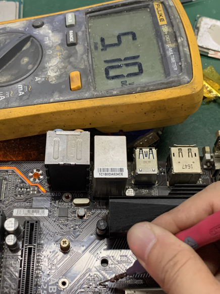 The dqc2 field tube was directly removed, but there was still no VCC. It was found that the 2.5level VCC was not generated by measuring the partial voltage resistance.Trace from Io chip,diode value is 0,Capacitor,Short circuit.