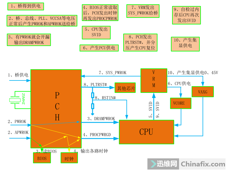 PCH should receive two PG (pwrok1) after VCC is normal. When the tweezers are pulled out, there is VCC in a moment.
