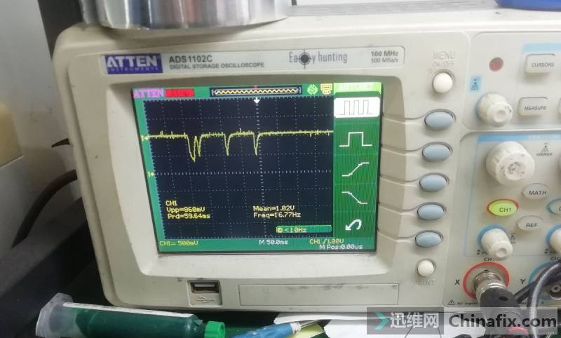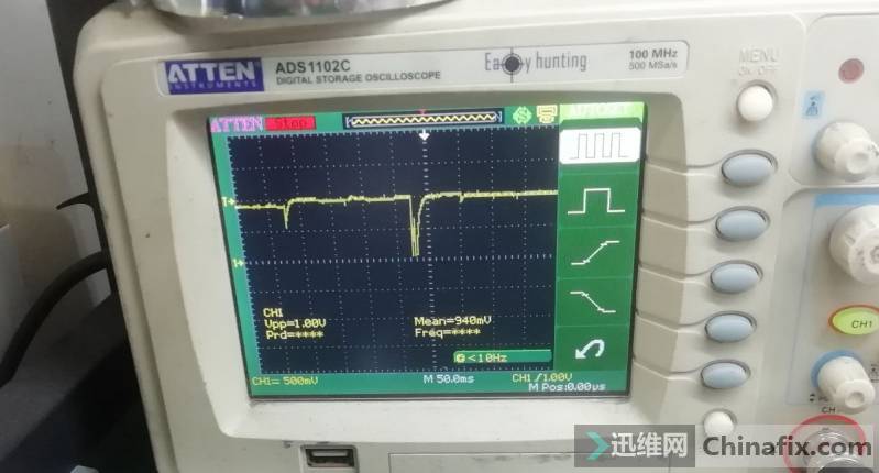 Turn on the oscilloscope and test VCC again. A problem is found in the VCC unstable bus.