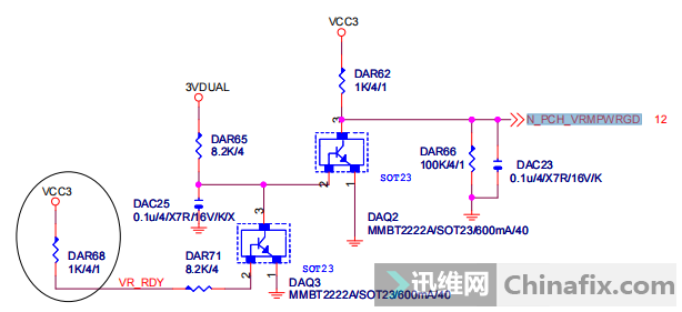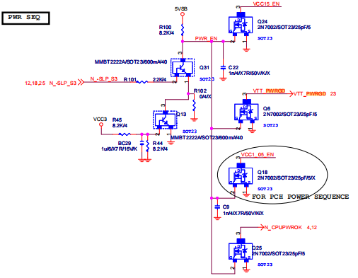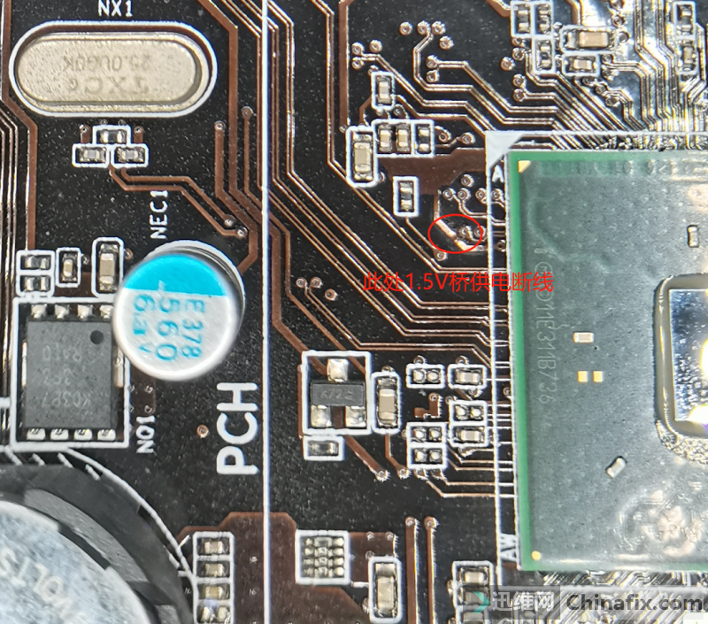 3. Check Q25 3-pin N_ CPUPWROK 0V is abnormal, judge that the bridge power supply is abnormal, and check VCC1_ 5_ PCH 1.5V and VCC1_ 05_ PCH 1.05V voltage output is normal.