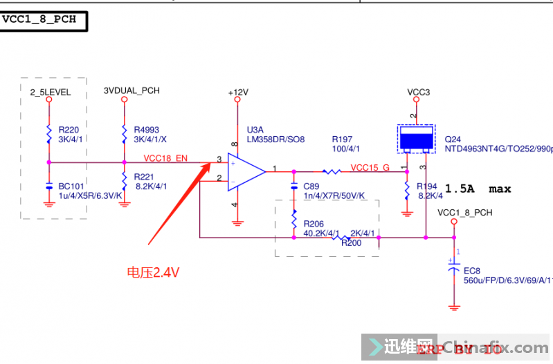 Later, we looked at the circuit diagram and measured the voltage step by step. It was found that the voltage of pin 3 of Q24 was 2.4V (actually 1.8V). After finding the problem, we measured that pin 3 of U3A was also 2.4V, which was not equivalent to 2_ 5LEVEL came directly. It was judged that there was a problem with the resistance R220. The resistance value was only A Ω after the removal amount. It was determined to remove one from the feeding plate and replace it with another, install the U into the memory, start the machine, and light it up directly. Press Restart to not restart repeatedly. The fault was removed.