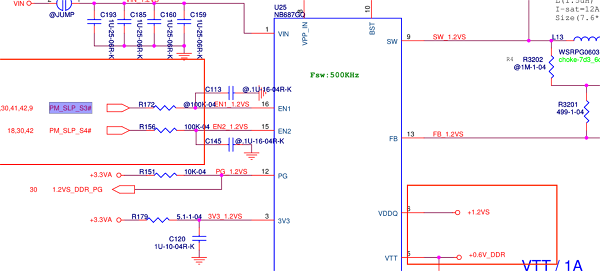 This is a single motherboard sent for repair by peers, and the shell and accessories are not sent. The current on the single board can reach more than 300 mA, and there is no CPU power supply. The timing is here in SYS_PWROK, and there is no platform reset. The CPU power supply chip is turned on and there is no power supply. This board has a timing, and the bridge uses SR40B. We slowly check according to the timing, and found that the +0.6V_DDR power supply of the memory does not come out. Check that the turn-on of this signal is PM_SLP_s3#, but this signal doesn’t come out, that is, the s3 signal doesn’t come out, and the s4 signal is 3.3v If the S3 voltage is measured at many places on the board, it’s ok to change the bridge directly.