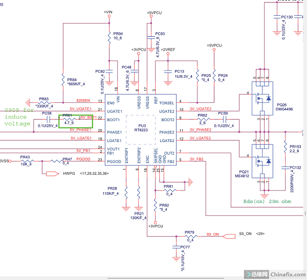 Compared with the 4th pin tonsel and the 14th pin skipsel, it was found that the working conditions in some places were different. The 4th pin and the 14th pin of rt8223 were disconnected from the main board.I cut it directly with a blade.