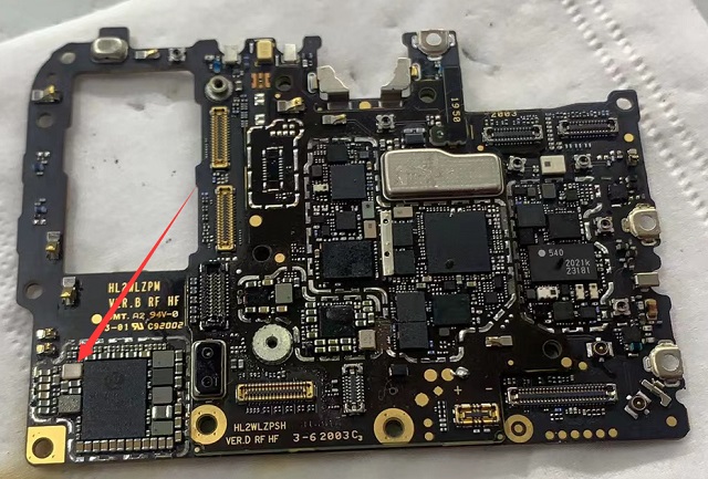 A 5G Huawei nova6, the mobile phone is slightly corroded by water, and there is no service when it is turned on. It can find the operator, but it has been repaired or not. The water inlet machine has no service. Check each chip foot of the power amplifier and its power supply.
