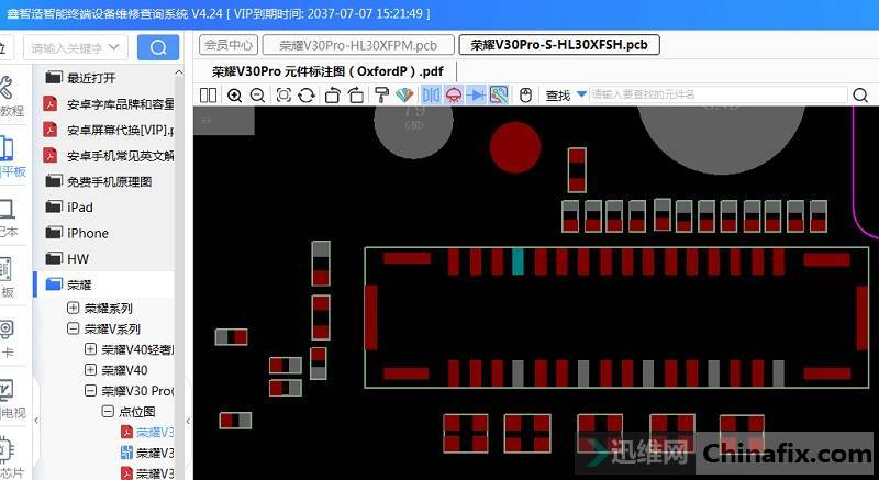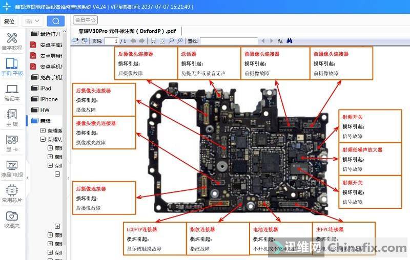 Open Xinzhizao Soft software, find Honor v30 Pro annotation drawing and screen BTB connector.