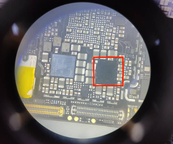 Disassemble and take out the motherboard, and observe the WiFi signal part on the motherboard. It is found that there are traces of corrosion next to the WiFi chip, which should be caused by water entering the phone before.
