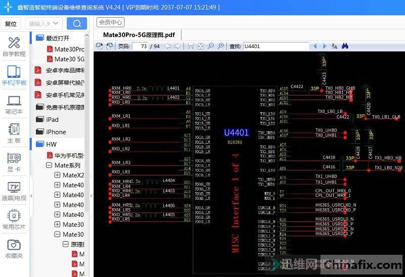 Open the Xinzhizao Soft software, find the Mate30 Pro annotation drawing,Boardview, schematic, and find the signal part.
