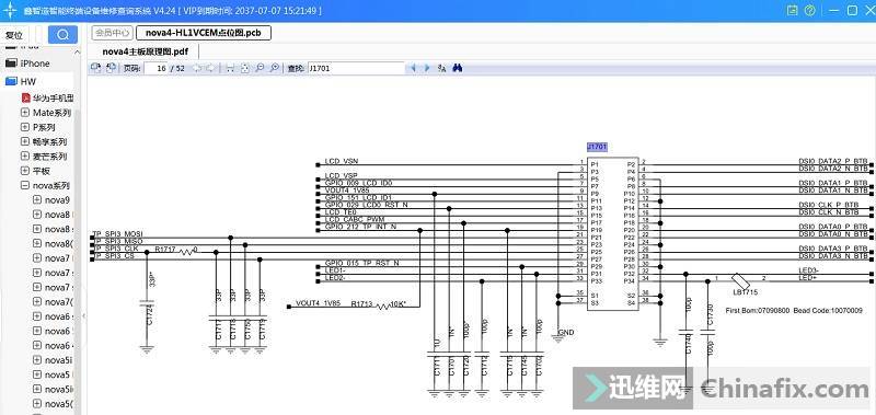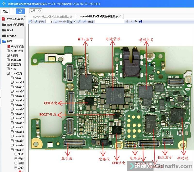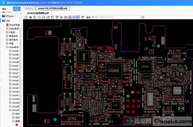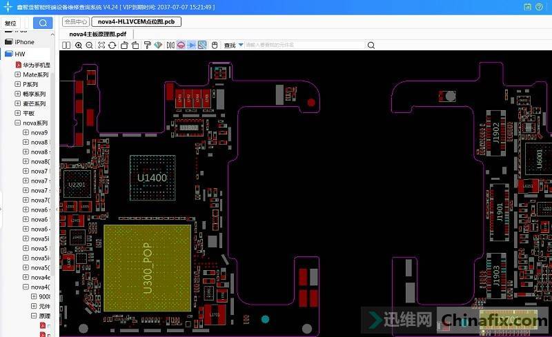 Open the Xinzhizao Soft software and find the annotation drawing of Huawei Nova4,Boardview,schematic.