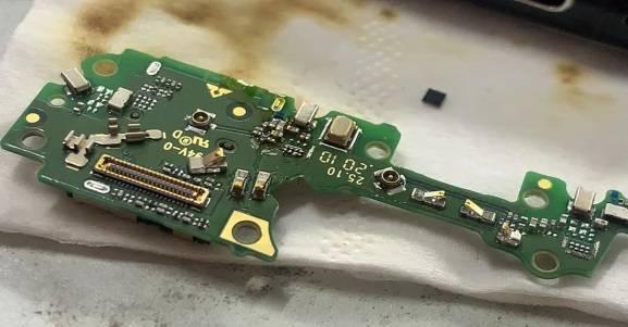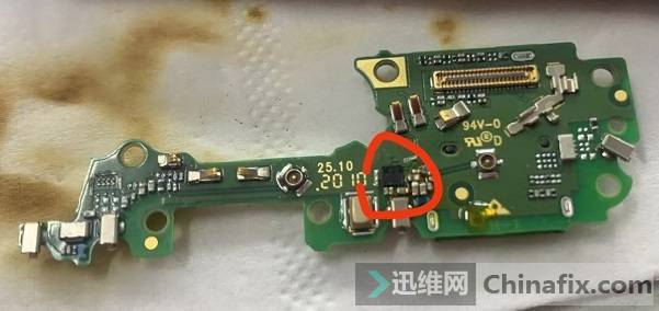My colleague told me that there is a HI6421 power supply in the lower left corner of the motherboard, and corrode in the upper left corner.