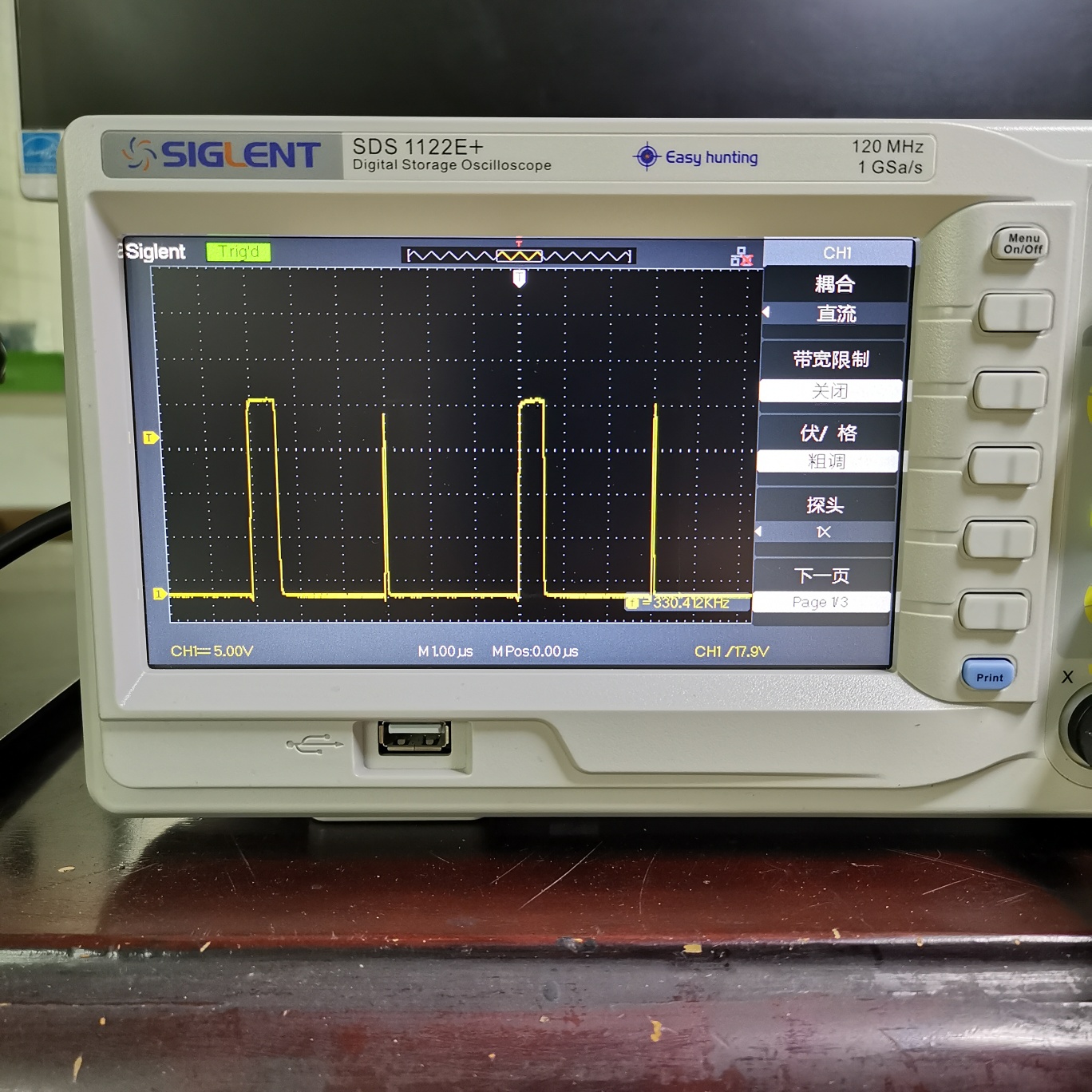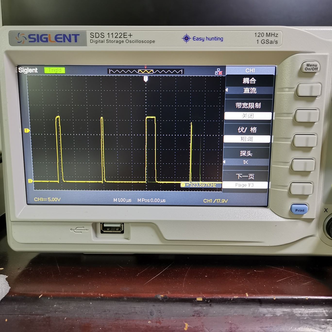 The oscilloscope tests three groups of MOSFET g-pole, except the first group q538 g-pole has waveform, the other two groups of upper and lower tube g-pole are not.
