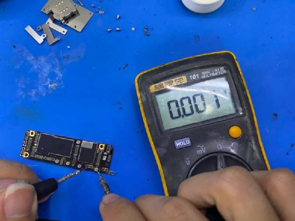 I received an iPhone 11 from the customer, disassembled the machine and tested the power meter, and found that the mobile phone motherboard Short circuit, used multimeter to measure the battery VCC diode value to zero, and gave the mobile phone separate, measured the main VCC, diode value was also zero, the problem should be the main VCC By the way, since Short circuit is on the upper layer, we observed the upper motherboard and found that a main VCC Capacitor has obvious abnormalities.Remove this Capacitor and diode value to return to normal, and restart the welding mobile phone to start normally. At this point, iPhone 11 mobile phone no booting malfunction repair is over.
