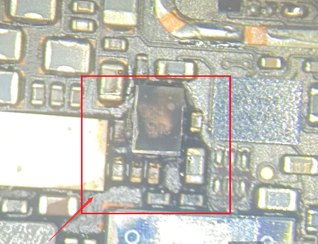 Repair process: the mobile phone was powered on and tested. It was found that the mobile phone short-circuit current 20mA.separate found a chip chip corner, check schematic, found that this chip is USB VCC accessory, so replace a chip.When the mobile phone is fully charged, it does not short-circuit current, the standby power consumption is normal, and the fault is repaired.