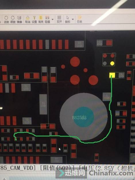 After measuring short-circuit, the screen of 5.7V Inductor lit up, and went into the system test, the sound problem was perfectly repaired, but the rear camera could not be turned on, and the measuring 2.85V VCC was disconnected.