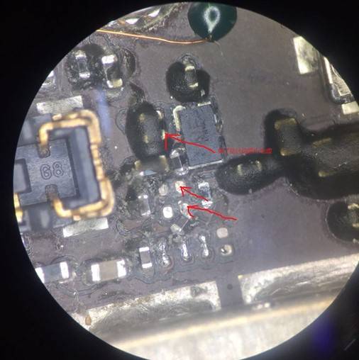 Capacitor on the side of AUDIO CODEC IC is indispensable. Look at BTB connector on the back under the microscope.