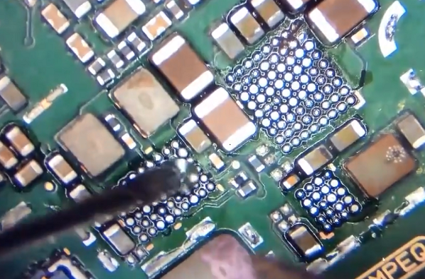After cleaning the motherboard, replace the Baseband power supply and charging IC, and then Update System passes again, but it can’t be charged after startup. Inserting lighting cable prompts that this accessory is not supported.