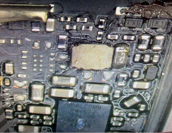 The repaired backlight IC damaged Short circuit, and the booster Inductor was damaged and cracked. When the customer shoot saw VCC rising, the rear pole was damaged Short circuit, and the original damaged backlight booster was directly replaced.