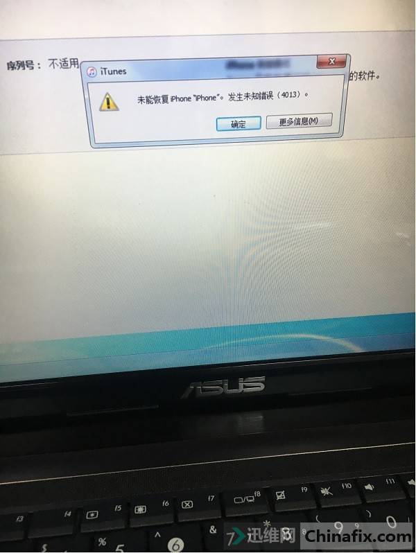 Maintenance process: use ITUNES Update System to find Stuck on Apple logo bright, flash the progress bar and report an error 4013.