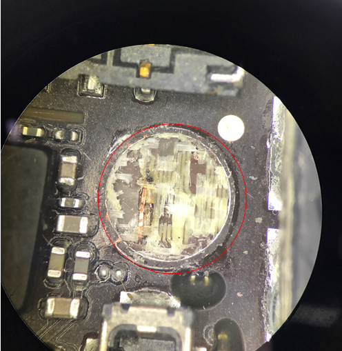 Replace the screen fault is still, it seems that the screen is not broken. It was found that Screw hole beside the battery BTB connector was broken and fell off under the microscope.