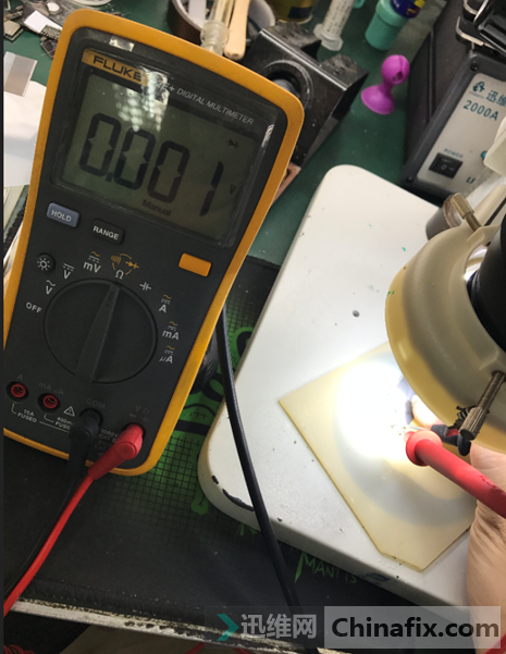 Disassemble the mobile phone, take down the motherboard, measure and display VCC to ground diode value and display PP5V7_LCM_AVDDH VCC of VCC.