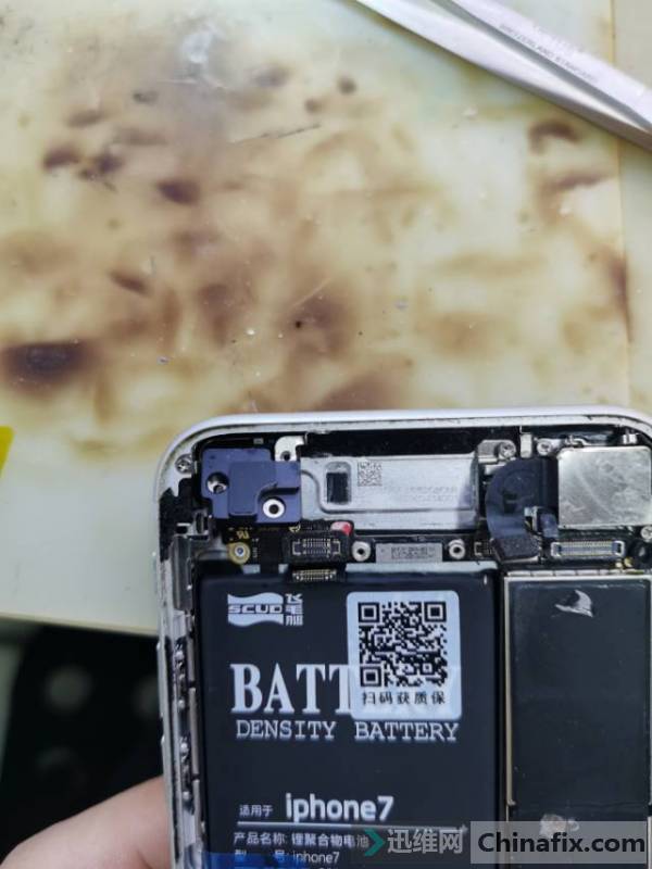 Because the mobile phone water damage, powered on short-circuit current Ma, there is corrode on the mobile phone. After cleaning, it is found that part of Baseband has been measured and repaired by the owner.